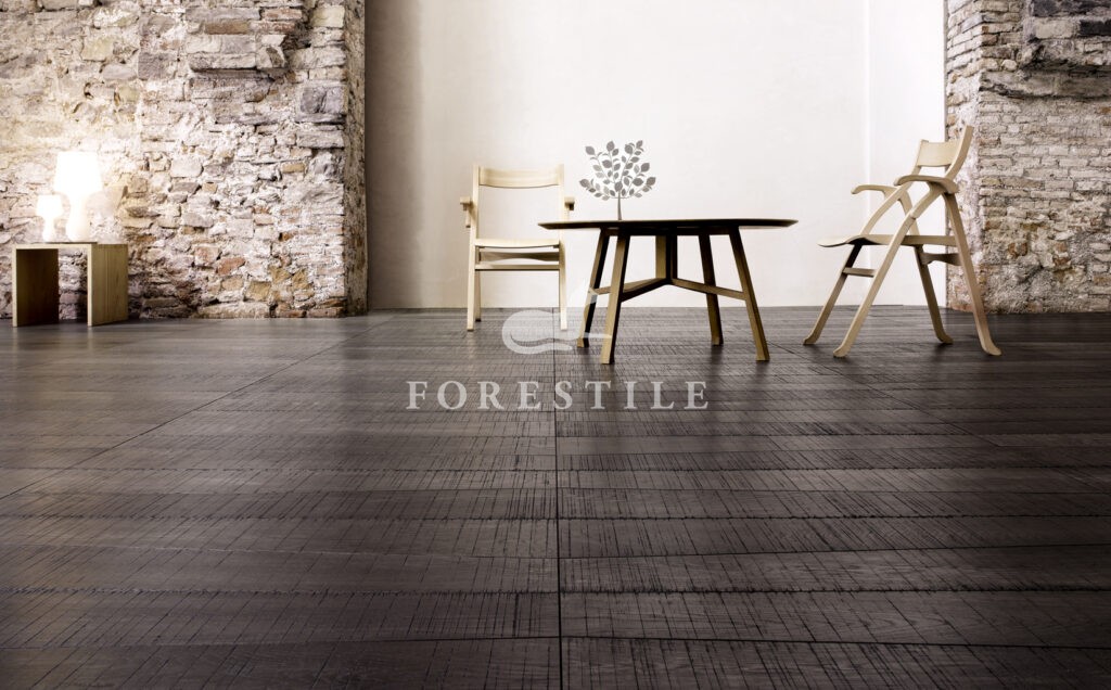 Ręczne, nieprecyzyjne, poprzeczne nacięcia powierzchni oraz przetarcia akcentują fascynujące efekty świetlne i niespodziewane doznania dotykowe, lekkość i trójwymiarowość. Odcienie kolorystyczne uzyskane za pomocą naturalnych zabiegów na bazie oleju nadają wygląd szorstkiego, starzonego drewna wystawionego na działanie żywiołów.