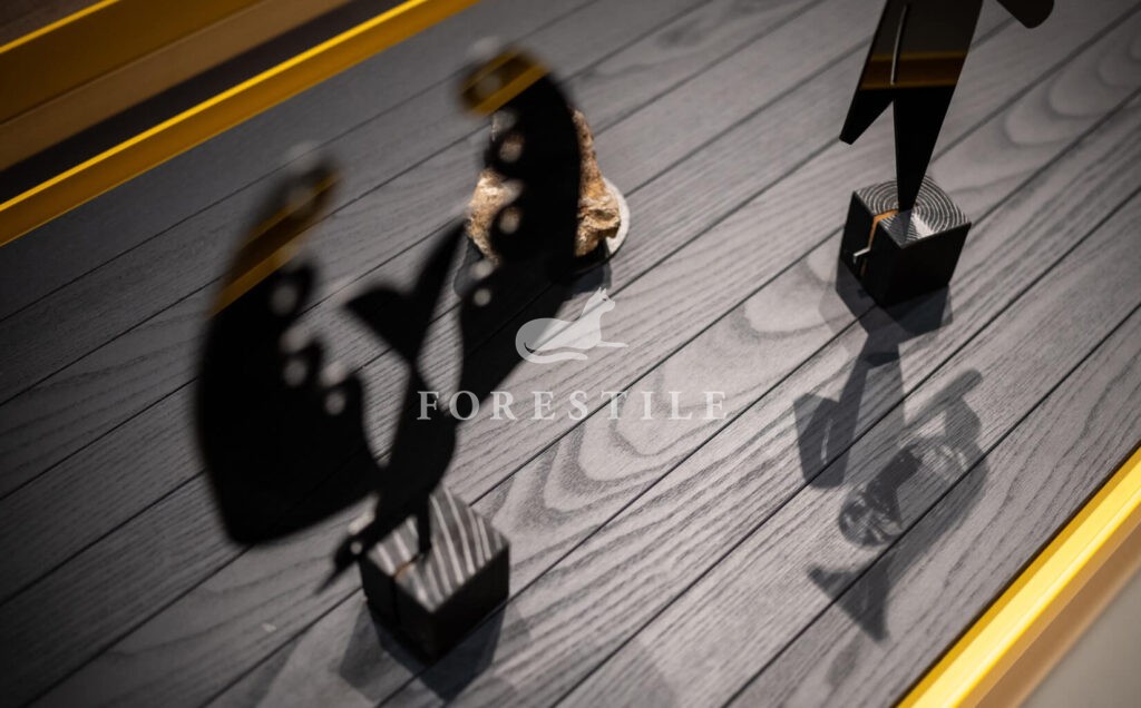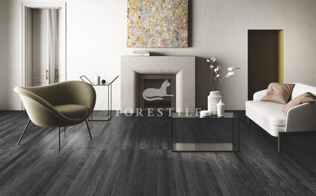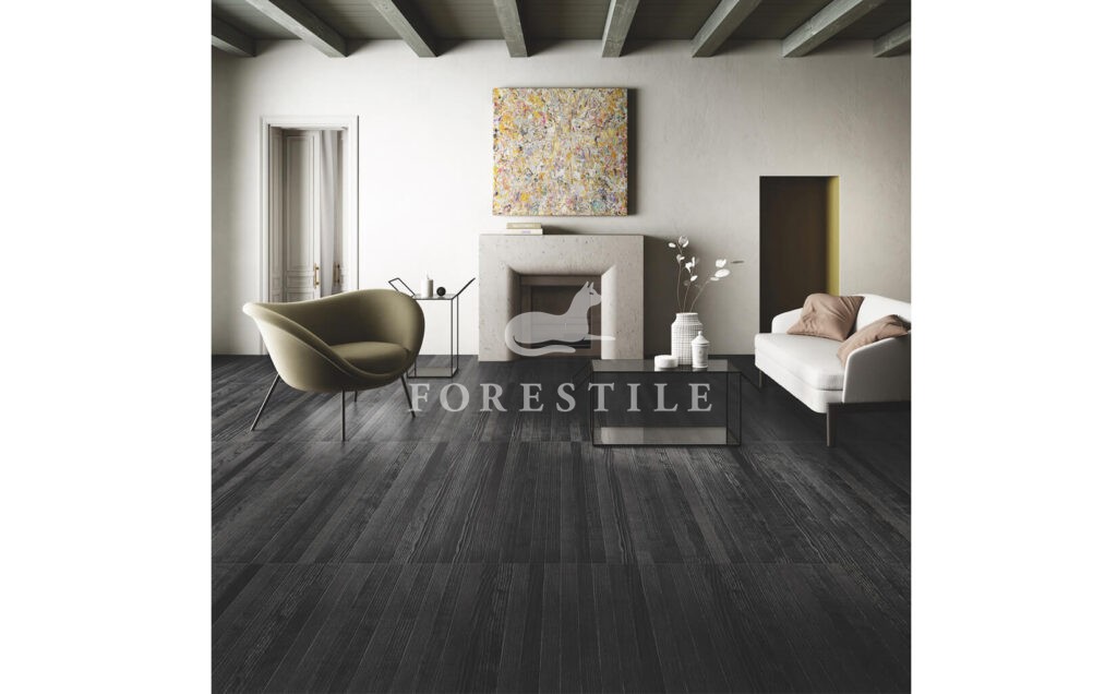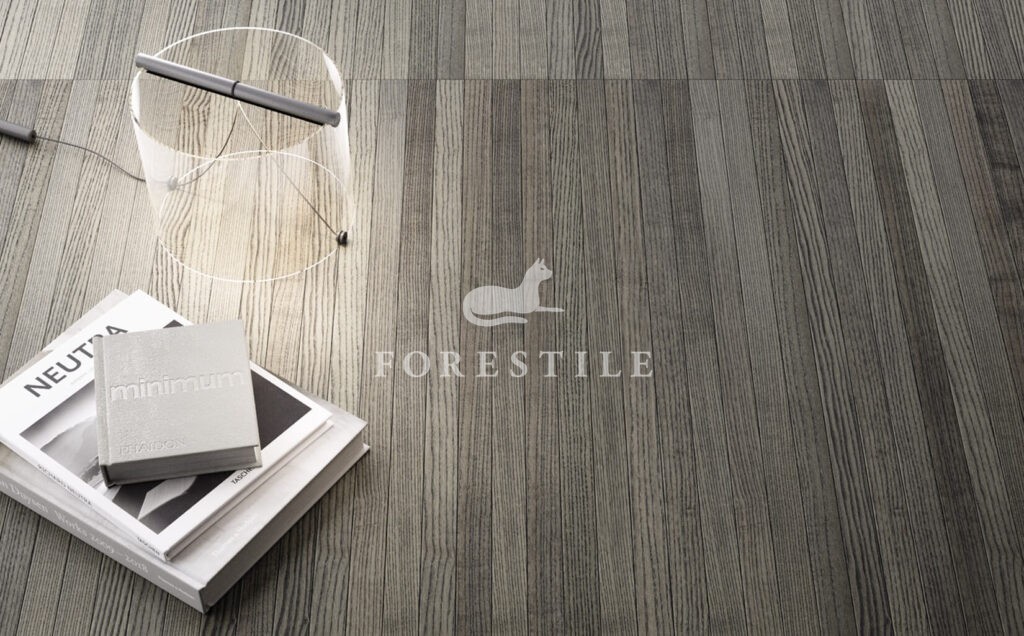 Subtelne, wąskie i smukłe deski, o równych długościach, tworzą ekskluzywne powierzchnie drewniane o oryginalnej „tkanej” fakturze i niespotykanych, chromatycznych tonacjach, rozciągających się od szarości poprzez odcienie antracytu, aż po głęboką czerń.