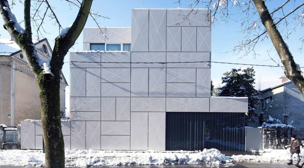 Czy motyw gry w kółko i krzyżyk można wykorzystać w architekturze? Okazuje się, że tak. Dowodem na to jest willa Criss Cross zaprojektowana przez OFIS Arhitekti w stolicy Słowenii. Wszystko za sprawą metalowych paneli wykorzystanych w elewacji frontowej budynku. Wyróżnikiem tego projektu jest również wyjątkowe wnętrze, które łączy w sobie żelbetową konstrukcję i drewno włoskiego parkietu Listone Giordano.